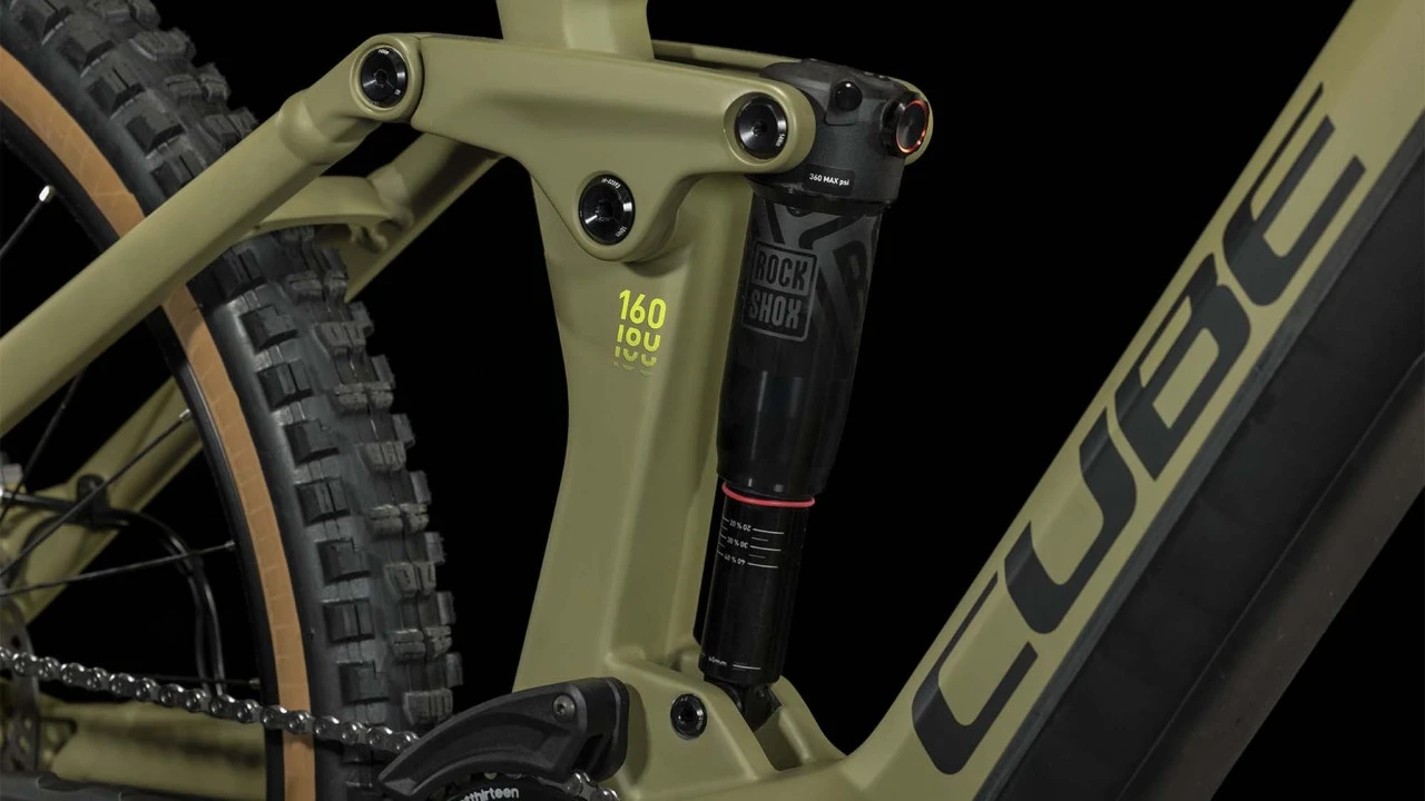 Elektroantrieb und voll Enduro ready, gibt es das. Ja, es heißt Cube Stereo Hybrid 160 HPC. Sein Carbon-Hauptrahmen kann dank seines modularen Akkusystems Akkus mit Kapazitäten bis zu 750 Wh sowie Bosch-Motoren der 4. Generation aufnehmen. Und da die Chassis weiterhin in allen Größen verfügbar sind, finden du sicher das Setup, das deinen Anforderungen am besten entspricht. Bei der Entwicklung lag der Fokus auf Vielseitigkeit und Praktikabilität. So ist genügend Platz für einen Flaschenhalter und einen Druckknopf zum einfachen Öffnen der Batterieabdeckung. Und die Race-orientierte Geometrie, Boost 148 Steckachse und 1,5″ Steuerrohr – all das garantiert ein sehr präzises Fahrgefühl und souveräne Traktion, selbst auf verblockten oder sehr ruppigen Trails. Dämpferaufnahmen, große Umlenkpunkte und Kabel im Rahmeninneren machen es aus sehr wartungsarm. So kannst du in den Bergen das Maximum aus deinem Offroad-Bike herausholen.